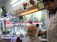 I really like barber shops, especially old-school ones, where you look around the place and are not sure what decade you are in. I had a great barber in Montreal, Steve the Hungarian. He always had a copy of the latest Playboy in the waiting area. Priceless.